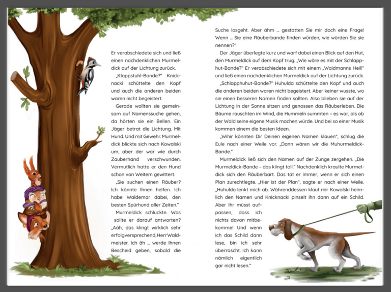 Und wie es sich für ein gutes Kinderbuch gehört, gibt es natürlich auch Gegenspieler, wie den Jäger mit seinem Hund Waldemar, den Polizeiwachtmeister und die diebische Elster Elvira.