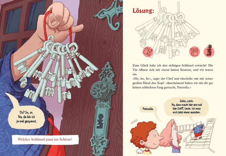 Die Rätsel sind einfach großartig, originell, abwechslungsreich und wirklich knifflig. Um sie zu lösen, muss man entweder sprachliches Geschick aufweisen oder von seinem logischen Denken Gebrauch machen. Auch ist bei einigen Kopfnüssen eine genaue Beobachtungsgabe vonnöten. Am Ende jedes Kapitels gibt es die Lösung. Die Knobelaufgaben sind vom Schwierigkeitsgrad für die Zielgruppe entsprechend konzipiert, einige sind einfacher zu lösen als andere, und haben auch mir als Erwachsene Spaß gemacht.
